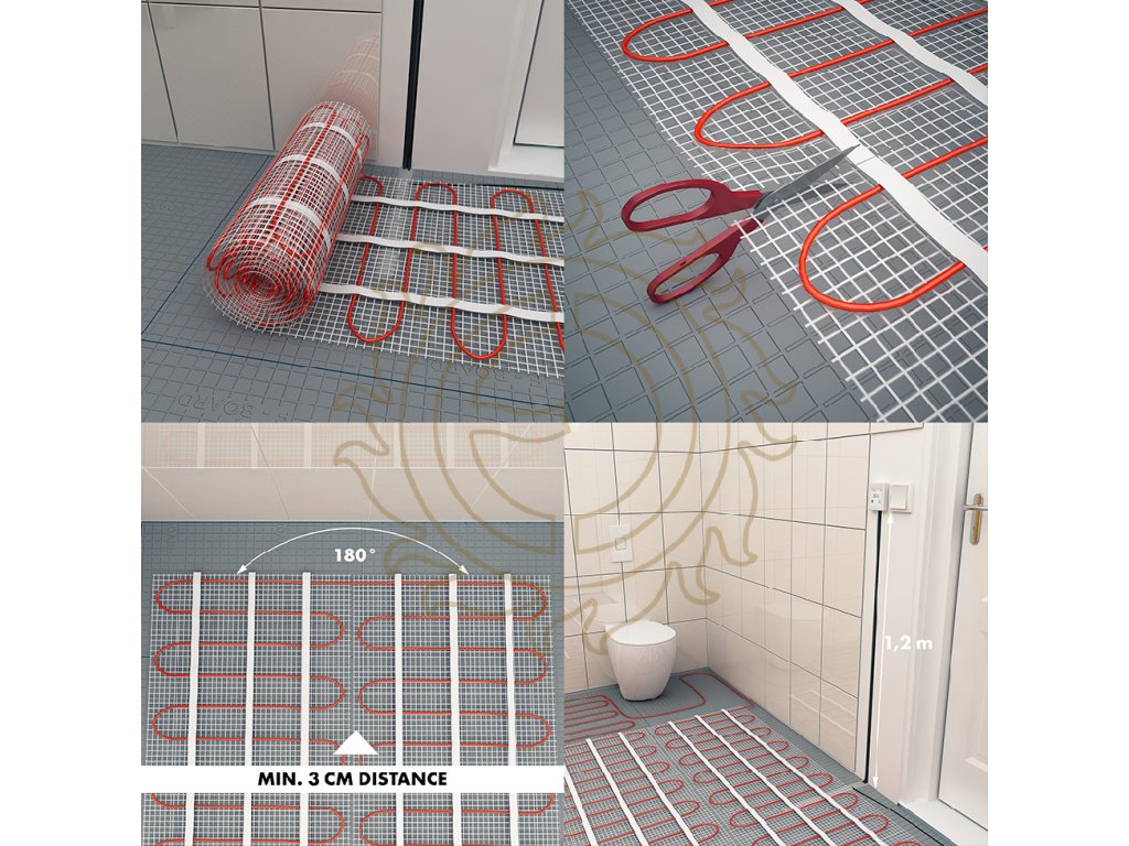 Sady jsou vhodné pro dodatečnou instalaci (rekonstrukce), ale i do nových aplikací. Díky oboustranným lepícím páskám na topné rohoži je montáž velmi snadná. Rohož je vybavena jedním přípojovacím (netopným) kabelem o délce 3 m.
