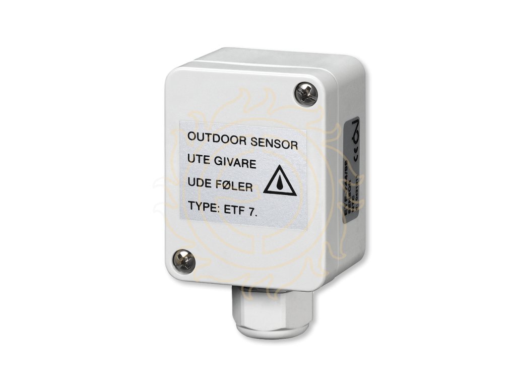 Nástěnný senzor ETF-744/99 je určen ke snímání teploty vzduchu pro regulátory ETO2-4550 a ETR2-1550. Senzor je určen přímo do venkovního prostředí, s instalací do míst, kde je zajištěna volná cirkulace vzduchu. Obvykle se umisťuje na fasádu v "nejchladnějším" místě aplikace (severní strana). Při umístění senzoru dbejte, aby snímání teploty vzduchu nebylo ovlivněno jinými zdroji (sluneční záření, ventilační nebo větrací výdech apod.).Senzor se instaluje ve svislé poloze, kabelovou průchodkou dolů. K regulátoru se připojuje dvoužilovým kabelem průřezu 2x 1,5 mm² délky do 50 m (při souběhu se silovým vedením je nutné použít stíněný vodič).