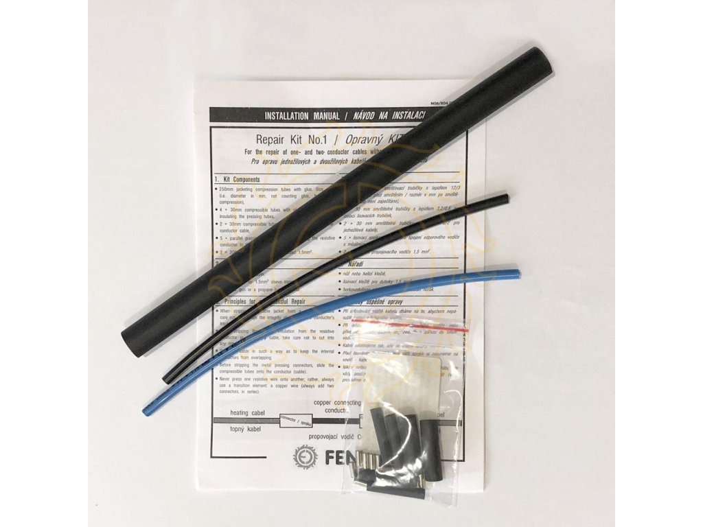 KIT č.1 slouží k opravě topných kabelů bez opletení (bez rozdílu výkonů - okruhy A1P, P1P, PV nebo rohože DT, LDT). Sada obsahuje lisovací spojky, izolační trubičky s lepidlem, propojovací kabel a návod k opravě.Doplňkové parametry