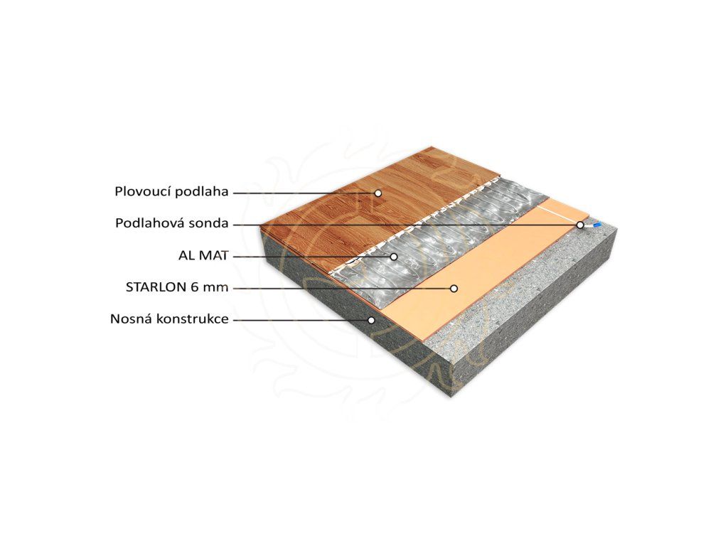 POZOR - v kombinaci s rohožemi AL MAT se musí použít kročejová izolace z extrudovaného polystyrenu o min. tloušťce 3 mm (Starlon, Depron apod.).