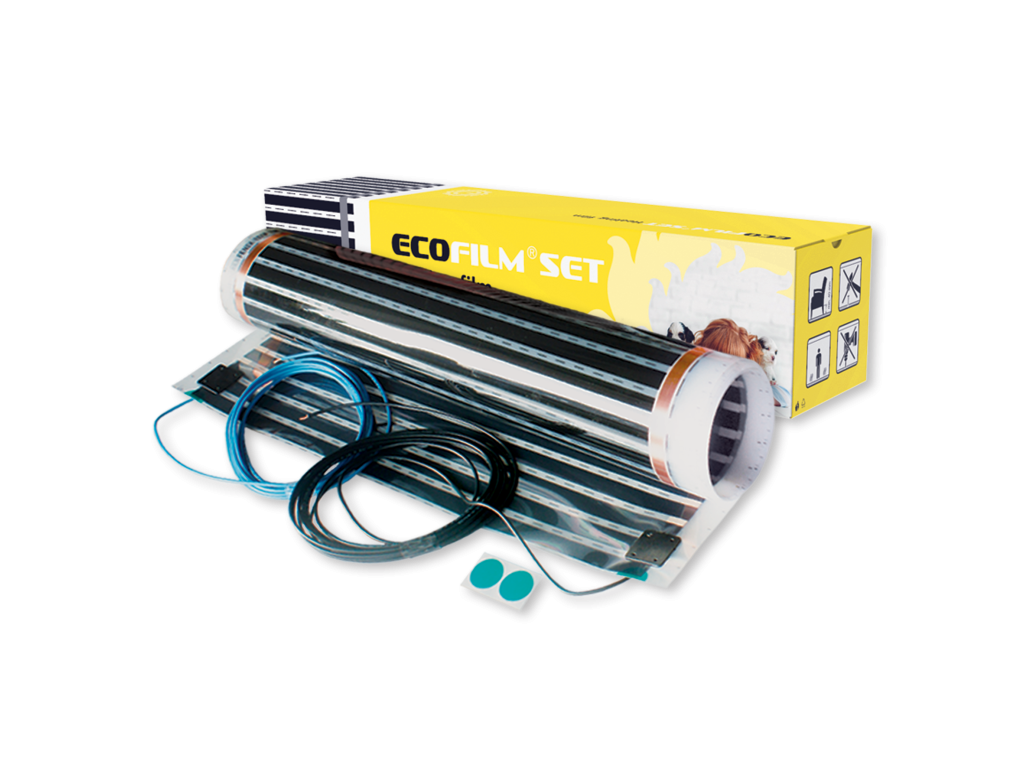 Sady Ecofilm Set lze na rozdíl od folií v metráži instalovat bez použití spojovacího materiálu (konektorů, vodičů, izolací, speciálních kleští). Sada obsahuje jeden pás topné folie se zaizolovanými okraji a připojovacími vodiči délky 5 m. Instalaci tedy může provést svépomocí i uživatel nebo podlahářská firma, zajišťující pokládku plovoucí podlahy. Součástí balení je návod a záruční list, na portálu YouTube je dostupná instruktážní animace.Sady jsou prodávány ve dvou plošných příkonech: