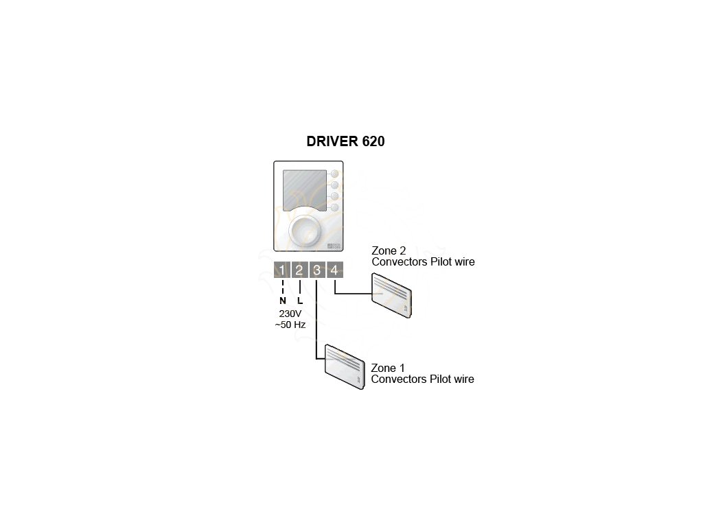 Regulátor útlumu je určen pro spotřebiče s pilotním vodičem (přímotopné konvektory) nebo pro analogové termostaty s funkcí útlumu. Pomocí pilotního vodiče posílá signál k přepínání mezi komfortní a útlumovou teplotou. Komfortní teplotou je hodnota nastavená na topidle (analogovém termostatu), útlumová teplota je o cca 3,5 °C nižší (velikost poklesu je pevně nastavena na topidle/termostatu výrobcem a může se pohybovat od cca 3,5 °C do 5 °C). DRIVER 620 umožňuje rozdělit objekt do dvou zón, pro každou nastavit vlastní týdenní nebo denní program.Technické parametry: rozměry 104x80x35mm; napájení 230V; záloha programu 2 hod.; krytí IP 30; tř. izolace II.; umístění na KU 68; výstup 2x 0,1A/230V
