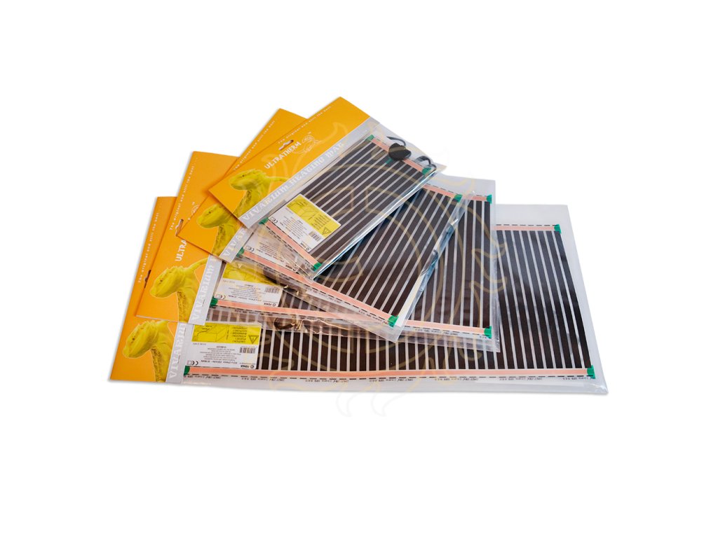 Topné folie a pásy Ultratherm jsou vhodné jako 24hodinový zdroj tepla a lze je použít pod dno nebo na vnější stěnu nádrže terária/vivária. Obvykle se pokrývá pouze část plochy nádrže, aby si chovaný tvor mohl najít místo s ideální teplotou. Folie mají povrchovou teplotu cca 30-40 °C (v závislosti na teplotě okolí) a pokud chovaný tvor nevyžaduje udržování konstantní teploty, lze je provozovat i bez termostatu. Folie se od sebe liší především poměrem délky a šířky:- Typ Viv Mat je širší (šířka 27 cm, délka 14-119 cm), proto se využívá zejména pro vyhřívání majoritní plochy vivária nebo terária (pro želvy, ještěry nebo drobné hlodavce)
