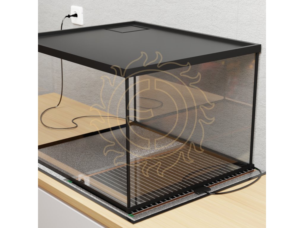 POZOR: Pokud je vytápění provozováno bez dozoru, musí být teplota omezena vhodným termostatem se sondou umístěnou ve středu vytápěné plochy! Teplota nesmí přesáhnout hodnotu požadovanou jednotlivými druhy chovaných zvířat, maximálně však 60 °C. U folií umístěných pod nádrží je důležité zajistit dostatečný odvod tepla - pozor např. na výšku a složení substrátu na dně.